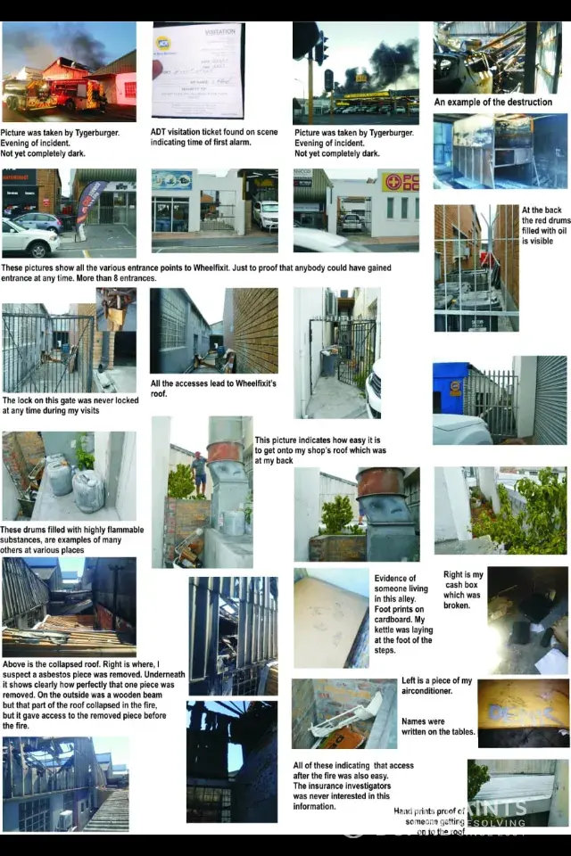 I started my own investigation and discovered the police was not going to do anything. After talking to the Station commander, I took the investigating officer to the scene, gave him clues, lots and lots of hard evidence and photographs. Apparently the investigation team of the insurance wanted the employee who they say I paid to start the fire, to testify that I indeed paid him!