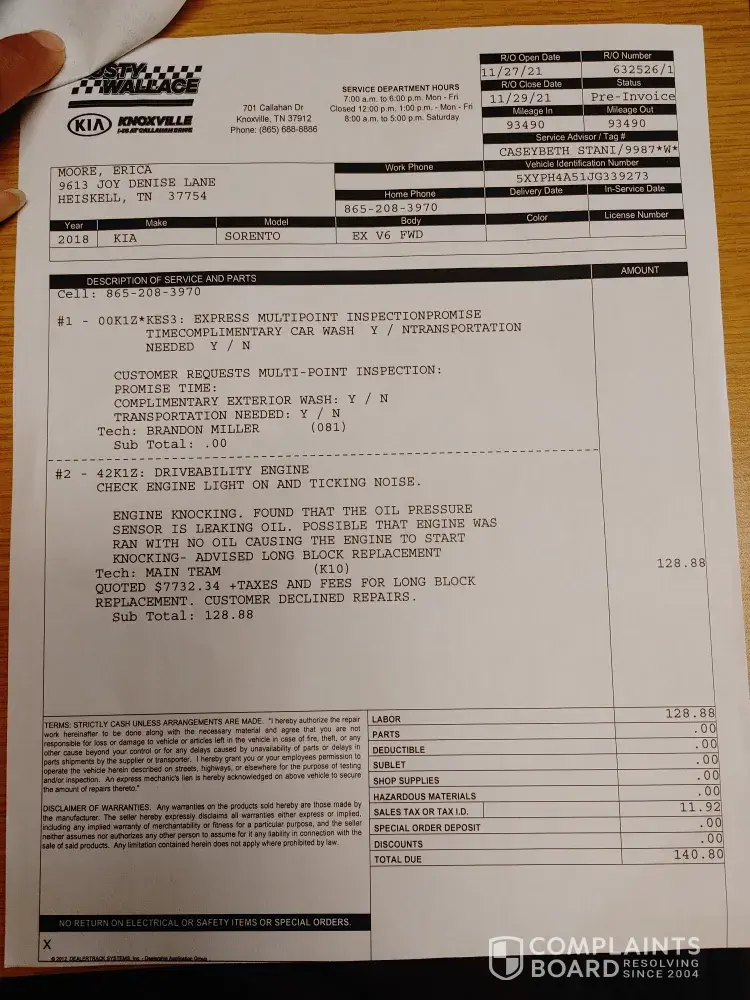 Read full complaintKIA Dealerships - 2018 KIA Sorento EX V6