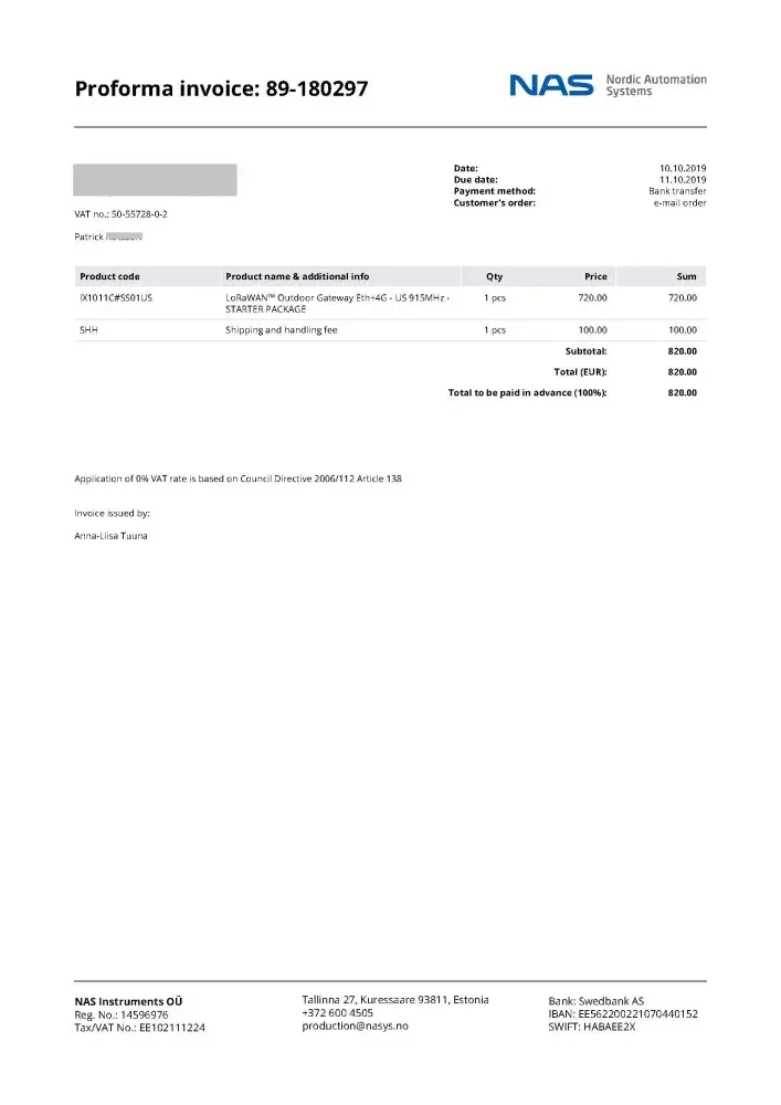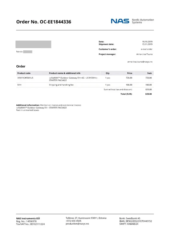 NAS Nordic Automation Systems - IX1011C#SS01US (Lorawan gateway)