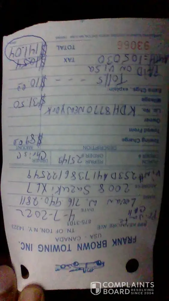 5/2/2022 My bosses truck needed a turbo installed. Company came recommended in the Cleveland Area. We are from Las Vegas. Company stated they have their own tow truck. Arranged the tow but their truck broke down. 5/3/2022 same no tow. 5/4/2022 called outside company to tow to yard. 19 miles tow was 75.00/ charged 375.00 5/4/2022 signed estimate for new...