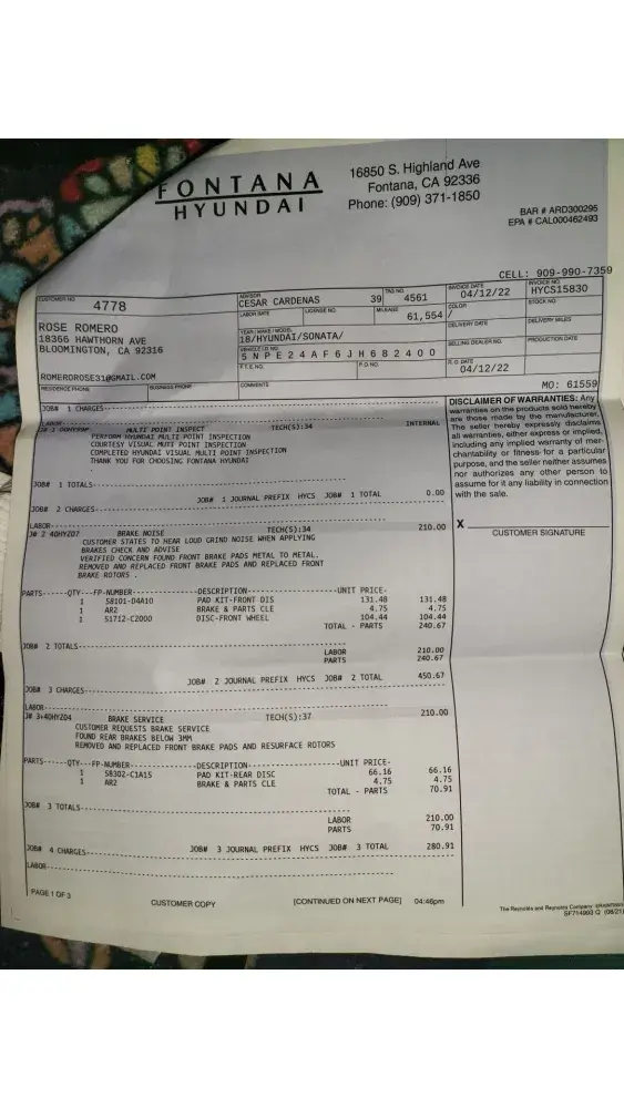 Read full complaintFontana Hyundai - Auto repair service causing expensive damage