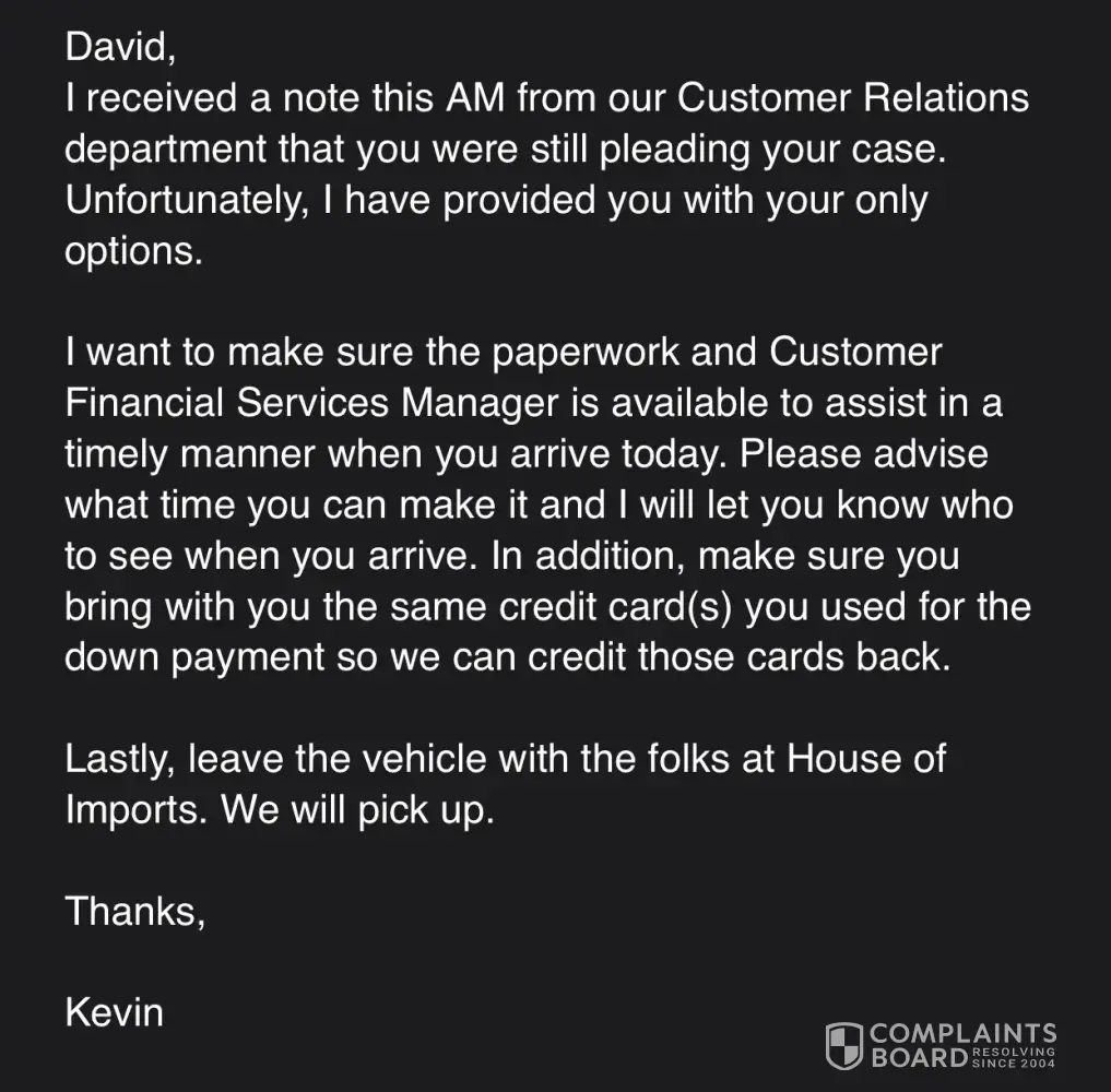 Still pleading my case from a GM, who wouldn’t come down and meet me and apologize for any convenience... worst car experience ever