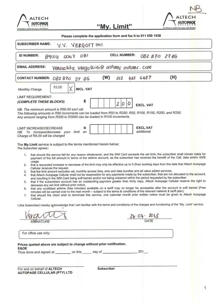 So I have been trying to apply for new account (just moved back to SA from the Middle East) and contacted Autopage to get a mobile servcie going...submitted to form over the internet.