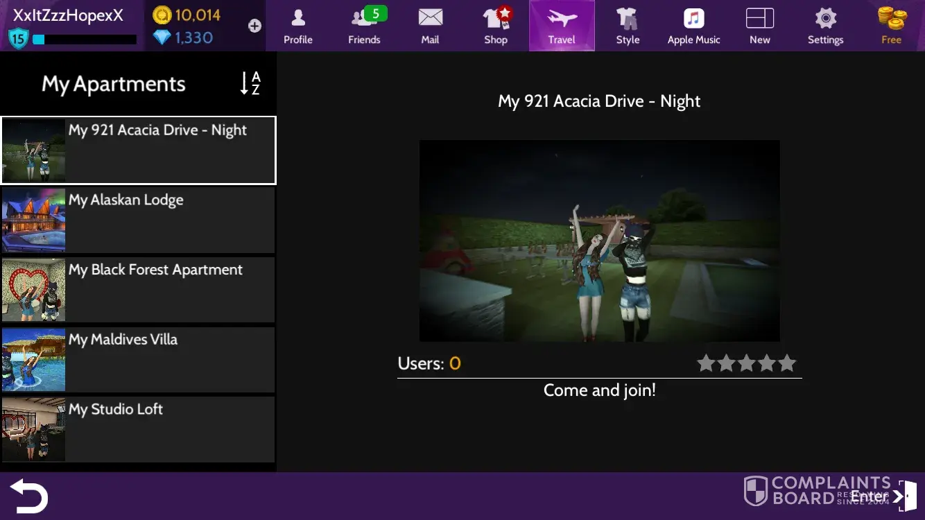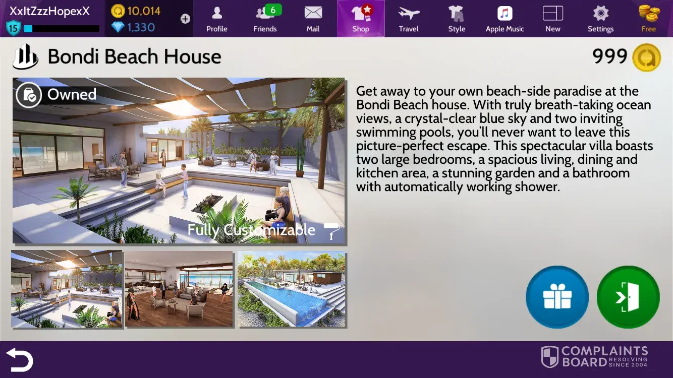 I bought a house on the game with 999 coins I had earned and I when to travel to my house and it did not show me the house I just purchased. Later I went into the apartment store and it shows me that I had bought the house but wouldn't let me enter. I really love playing this game and I will be really disappointed if I do not get my house back.