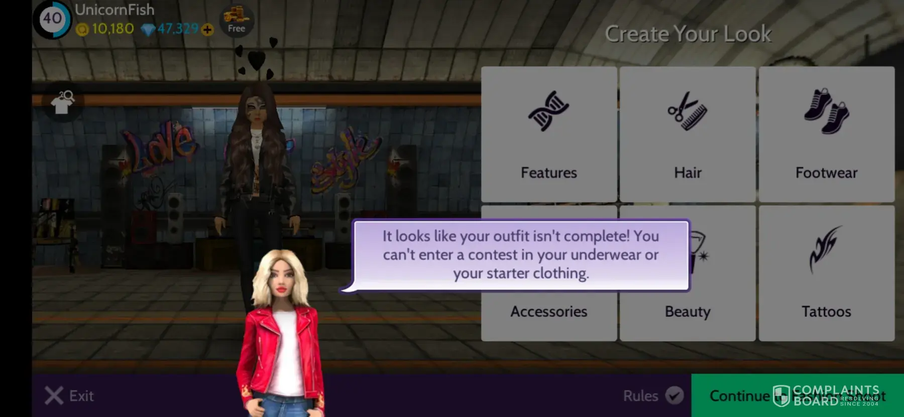 My username is UnicornFish. The Fashion Contest won't let me submit my outfit because it says that I'm not allowed to wear underwear or starter clothes when I'm fully dressed and bought new clothes from the contest to go with my outfit.