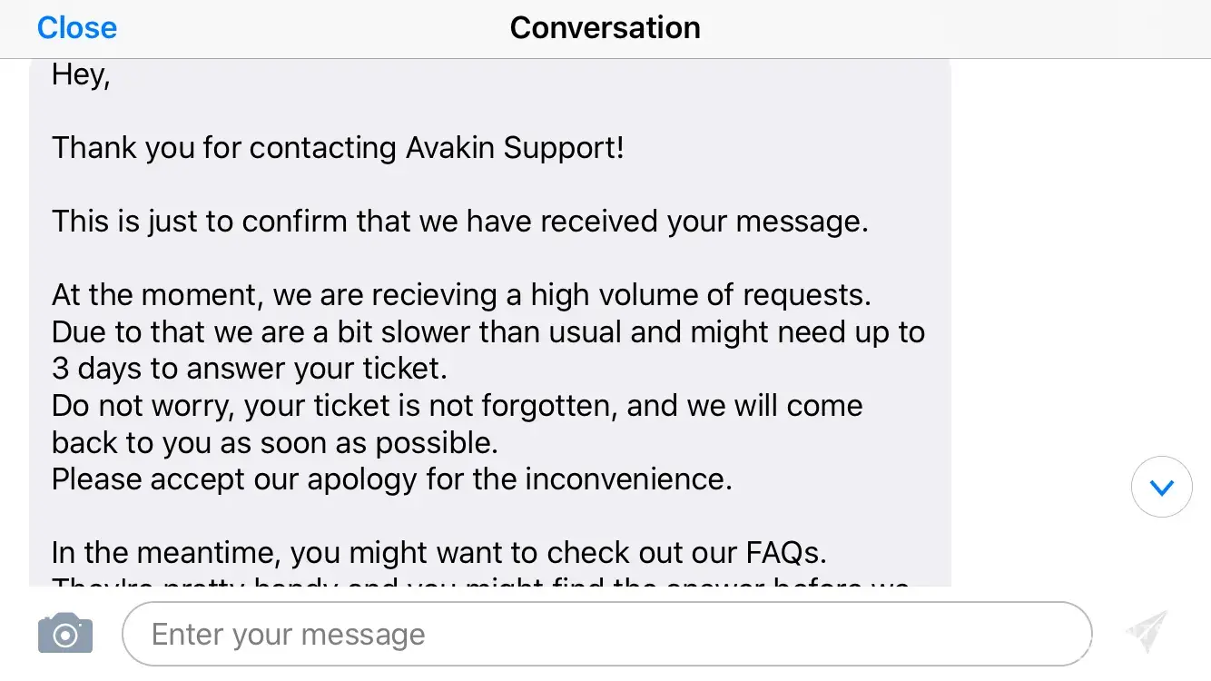 It took Avakin about 4 days to answer me and it was "Anton" who responded to my Email.