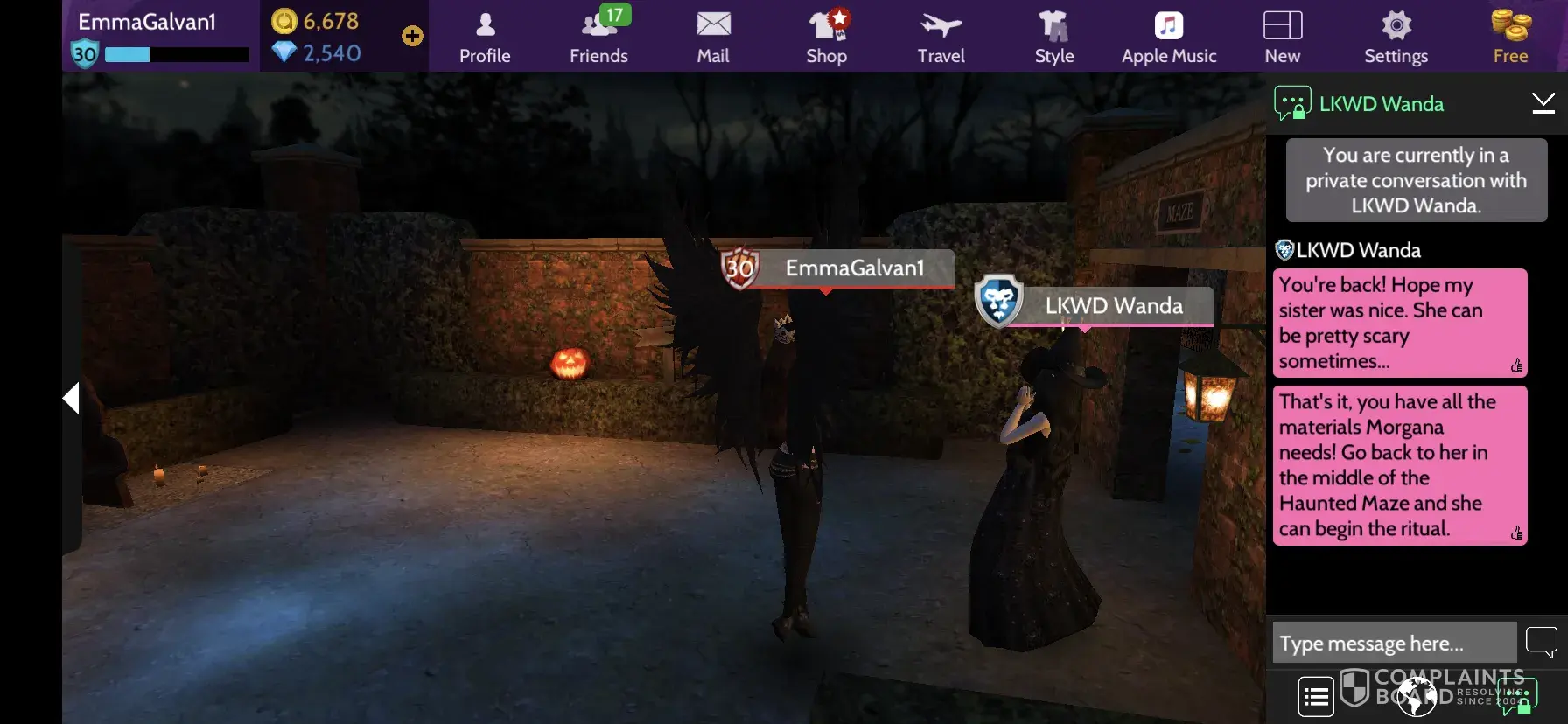 I have accepted the mission from Morgana and collected all five of the magic materials from the Wandas, and the teddy bear from Morgana on the first day of the event. I returned to Morgana at the center of the maze and she greets me with "Greetings, (username)" I have tried saying Greetings back, and have tried saying yes to retrigger the mission. Neither work she will not acknowledge that I have collected all of the materials. I contacted support that night and got the standard automatic "could take 3 days to respond due to flood of messages" and that was 3 days ago. I still have not recieved a message or email from Avakin with help resolving the issue. I tried uninstalling my app and reinstalling it. I have cleared the cached memory. I sent another message today. No response. Does anyone know what to do?