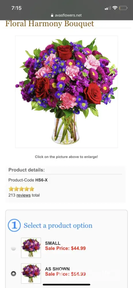 I ordered flowers online via Ava's Flowers. I paid $55 for the Medium bouquet and chose it based on the image. The image shows numerous flowers - over 17 sunflowers, roses, etc. When the bouquet was delivered to my friend for her birthday, it had 7 flowers. This isn't even HALF the number of flowers shown in the image. I filled out the online form for Ava's complaining about the number of flowers. The option provided was to have the bouquet picked up an redone; I chose this option. I received an email back stating that the bouquet delivered met their standards and they would not be redoing it. I'm not sure how 17 + flowers is the same as 7 flowers. You can see in the two images that the only thing in common are the types of flowers, not the quantity.