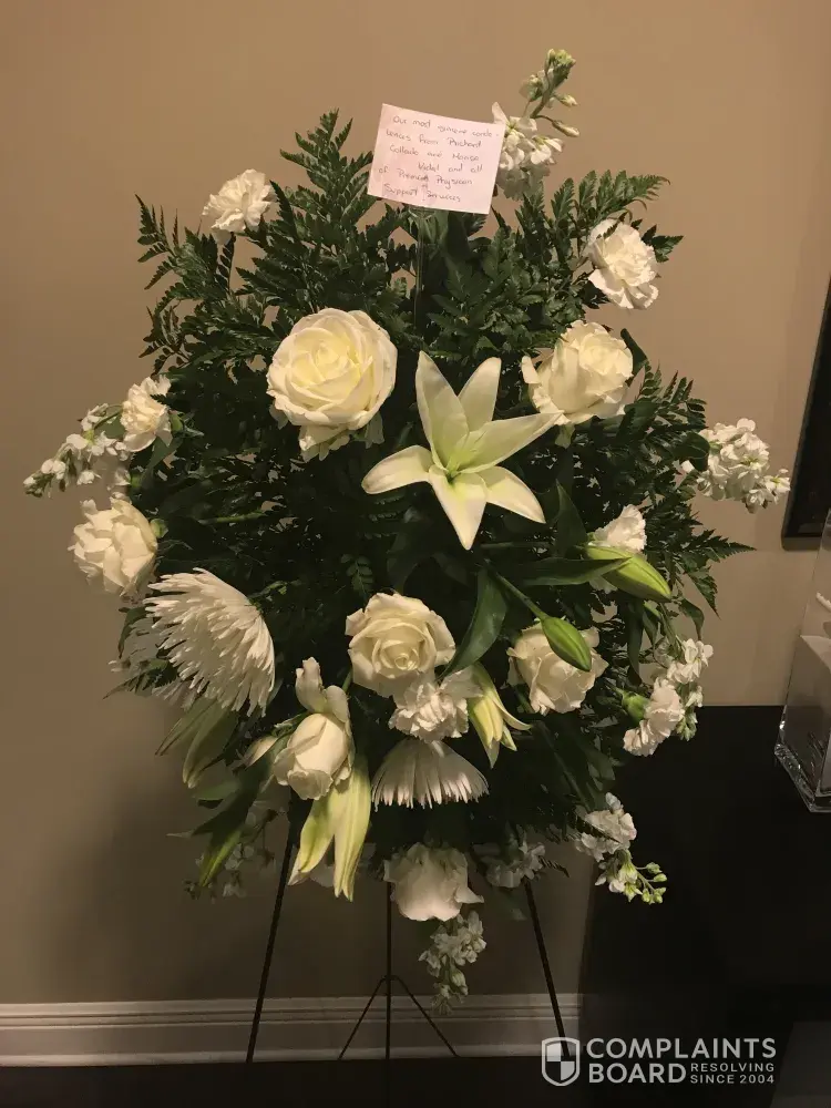 Flowers ordered 3 weeks prior to funeral with specified delivery time of 1pm to the venue where the Celebration of Life was to be held. I called again one week later just to ensure they understood instructions. They confirmed. On the day of the funeral, we were at the venue and no flowers arrived on time. I was on the phone for 40 minutes with Avas who could not tell me who was supposed to deliver the flowers (THEY ARE NOT LOCAL FLORISTS!), promised to call me back within 30 minutes with an update. No return phone call, no flowers for my fathers funeral.