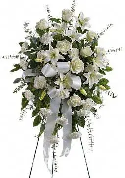 We ordered a so called Blooming White Standing Spray arrangement for a funeral. See 2nd picture below of what is on the company's website of the arrangement should look like. You think that is what you are getting.