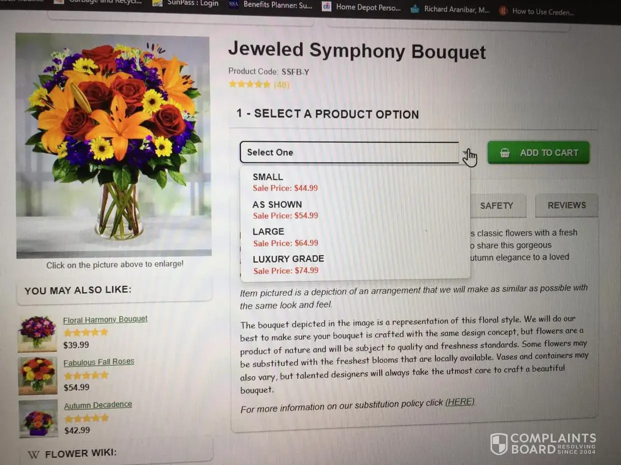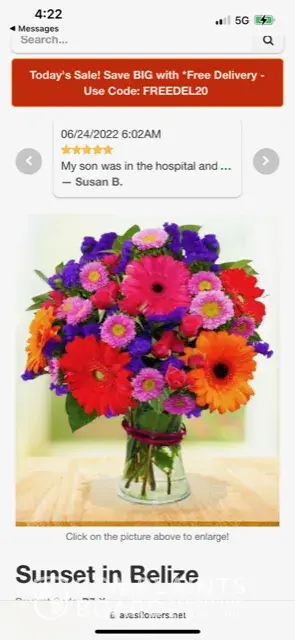 Do your research when ordering flowers. Since you don't get to see them before purchasing them, look at the experience of other consumers and not just the comments on the website. My mom ordered from them seeing the positive comments within the website. Obviously, their ratings on the site are also deceptive, especially after coming to this site and seeing the complaints.