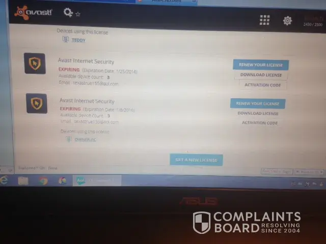 On August 15, 2015 at 2:07 a.m., I received an email from Avast reflecting my “license” has been renewed. However, please note – the actual expiration date for Avast was scheduled for November 2, 2015. There was absolutely no reason for the renewal to be processed by Avast on August 15, 2015 as I was still a current customer and had approximately 3 months remaining on my current subscription.