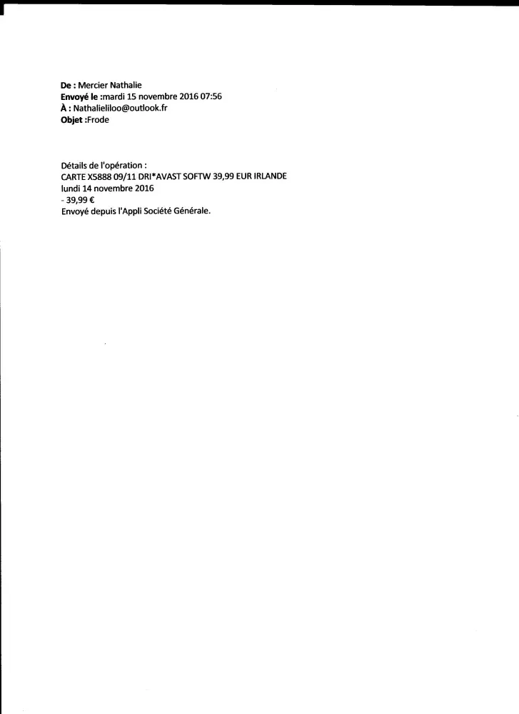 Cette sommes a était retirer le 14/11/2016 sans mon accord.