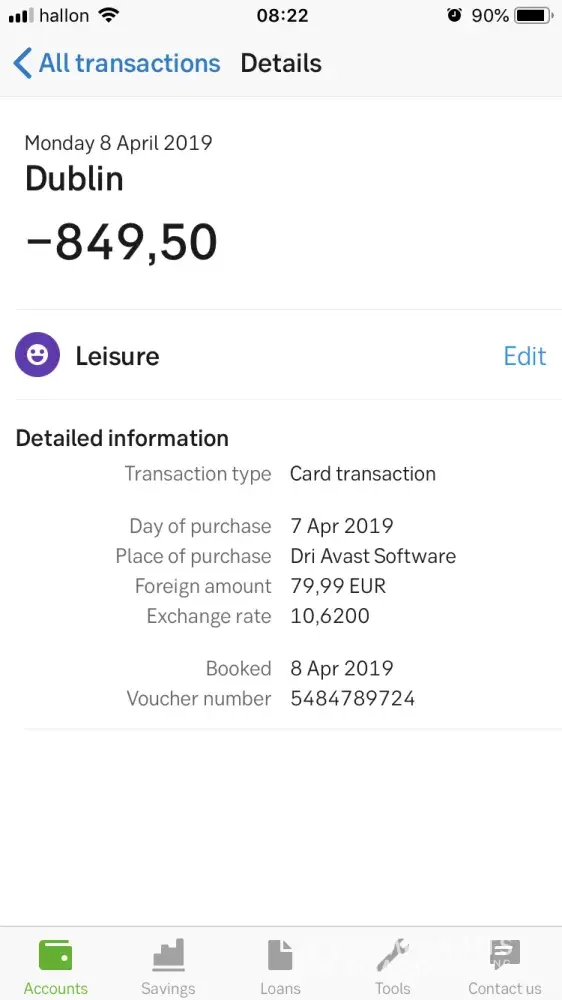 λεπτομÎÏειες: dri avast software dublin 79, 99 eur 430589xxxxxx4008 5817