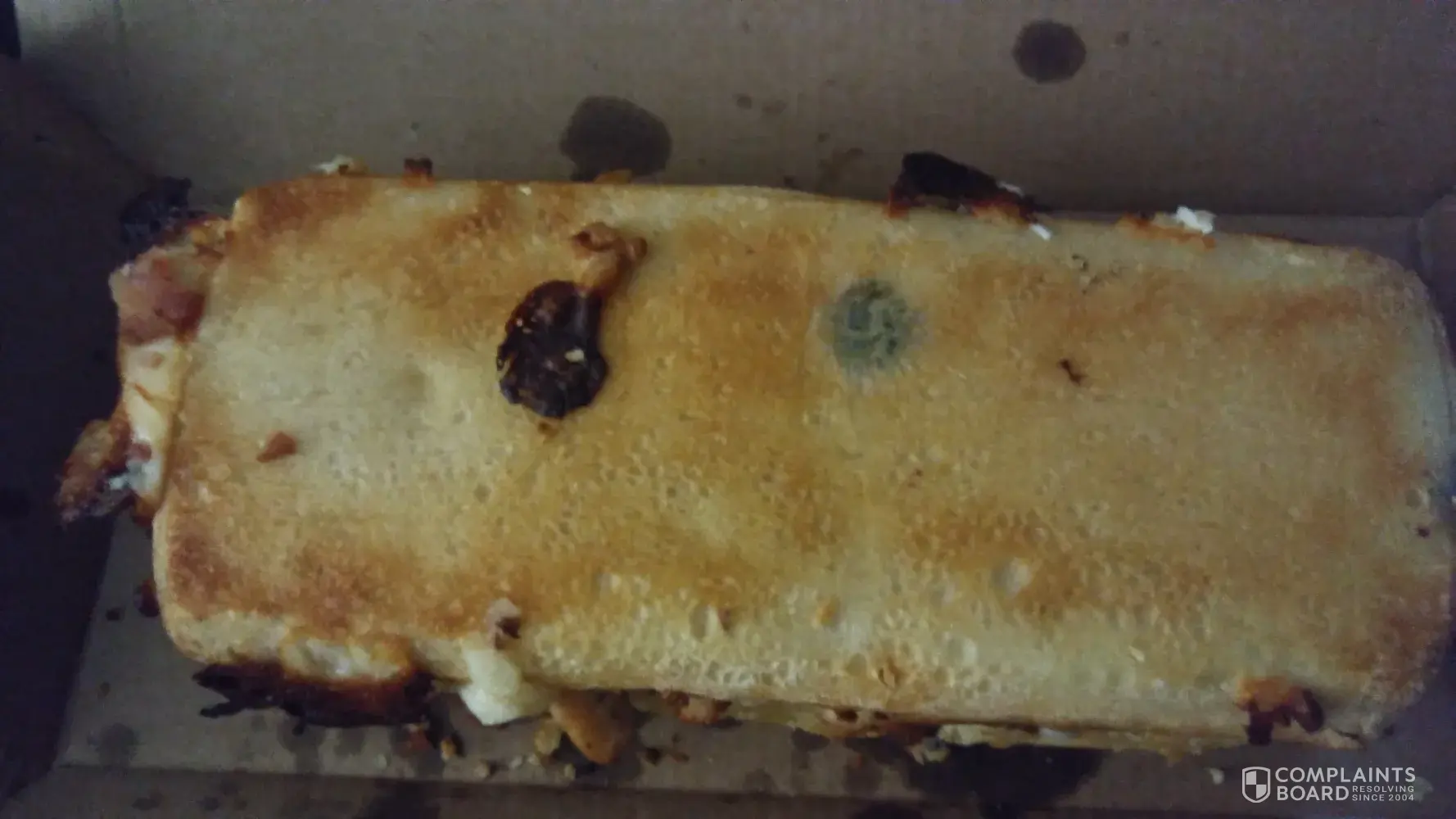 How my wife orders two chicken bacon ranch sandwiches and one of them, the bread has mold on it... Like how your employees did not see that? And we tried to call back and got no answer. The driver did not call to let us know he was outside. If I wasn't sitting outside at 2 a.m I might not have gotten my food. The order came from 310 Penn St. Reading, P.A.