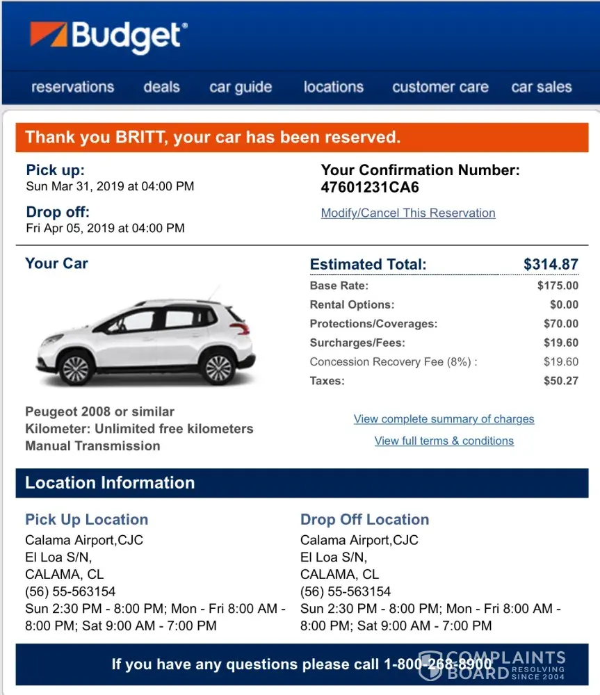Read full complaintcar rental south africa