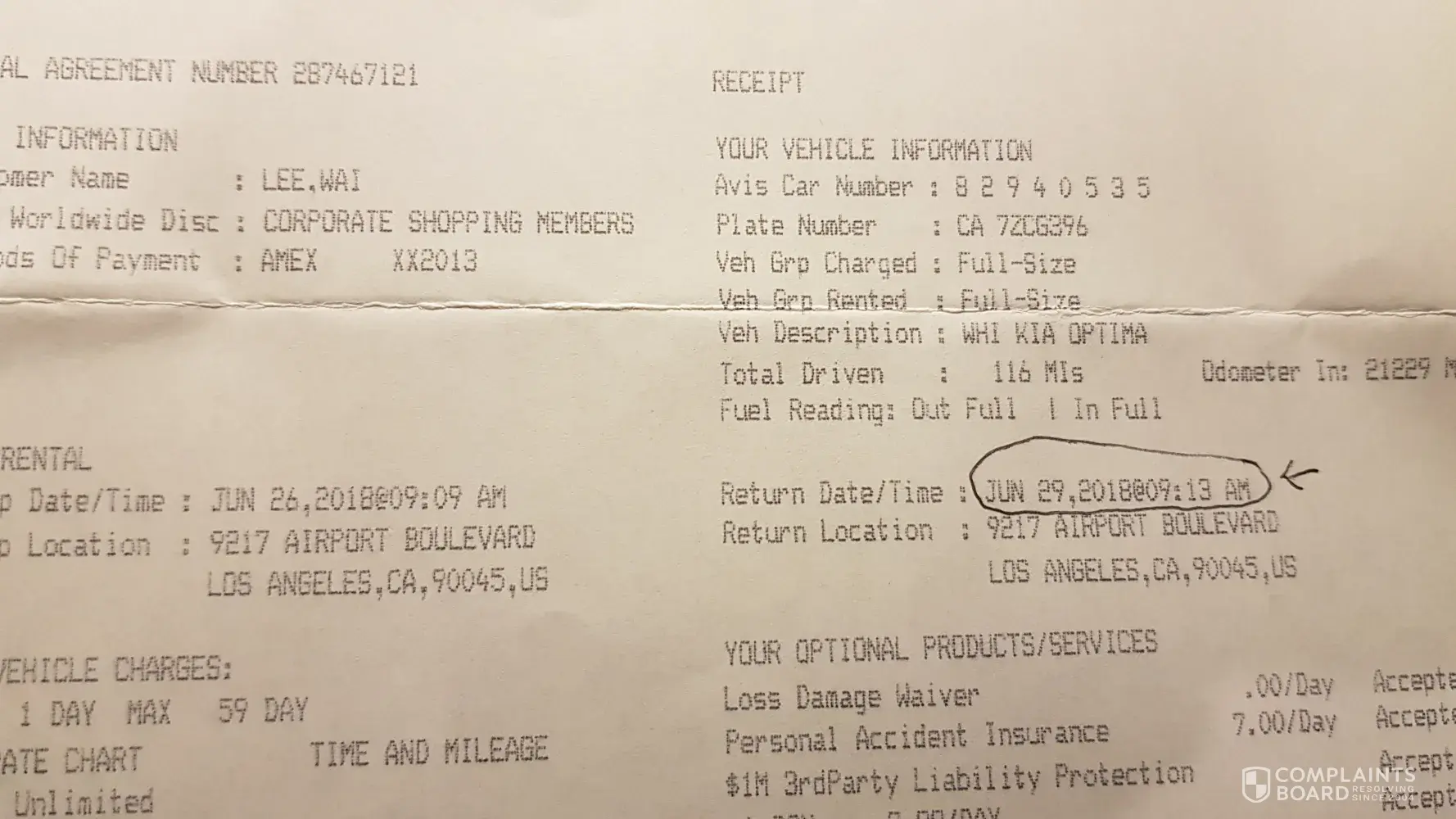 My family and I rented a car from Avis Rent A Car System (picked up on 26 June 2018 and returned on 29 June 2018) when we stayed in Los Angeles.