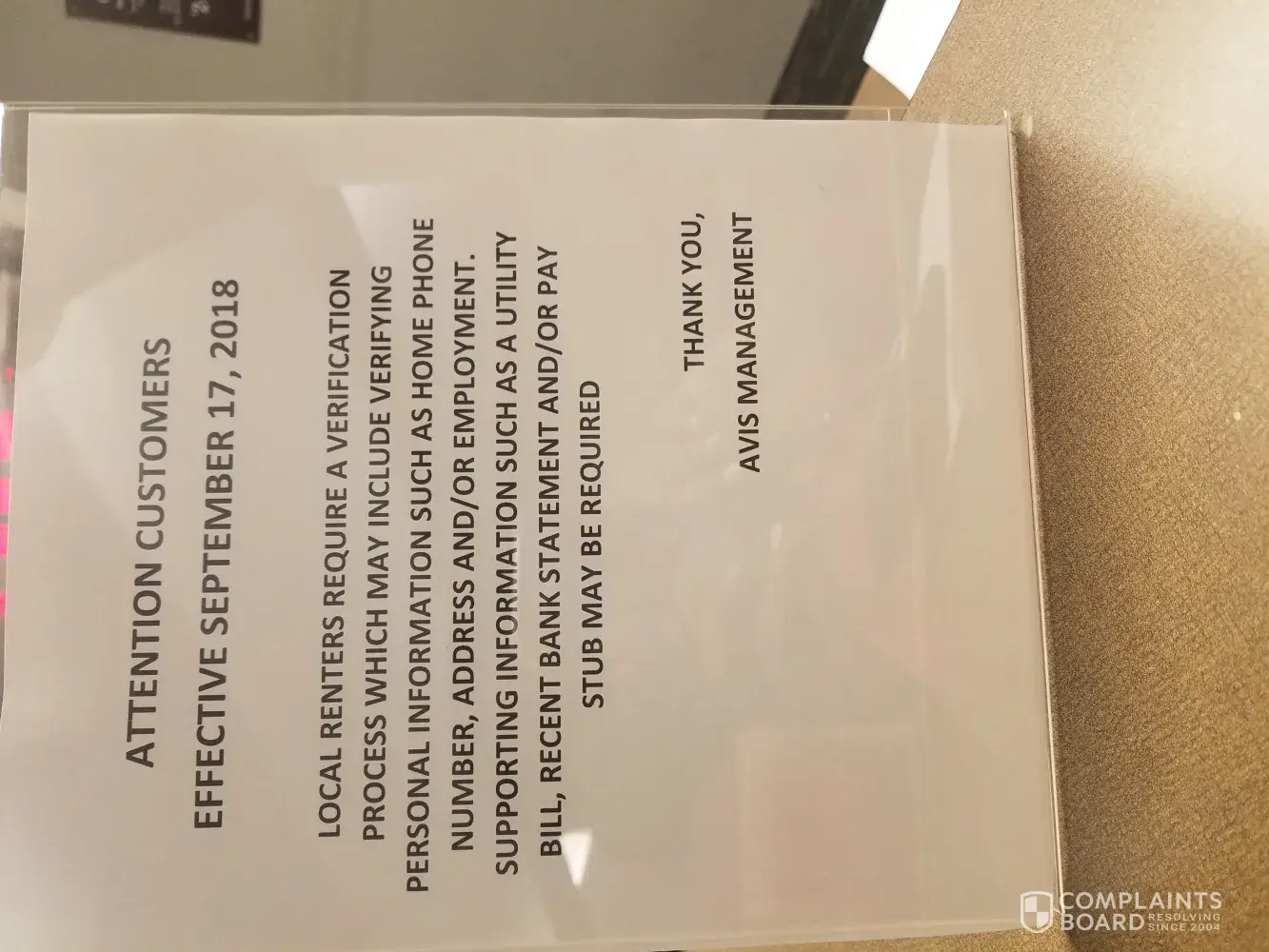 I am writing this letter to bring to your attention that I am not at all satisfied with the level of customer service I received at the BHM airport location. I was thoroughly disappointed in the manner in which I was spoken to at the desk by Ms. Charlene Chastain at approx. 9:00pm on 9-20-18. Upon arrival and request for my car she then POINTED to a update as of Sept 17, 2018 in which a requirement of proof of residency was needed along w/a bill or paycheck stub. I attempted to advise her that I was not aware of that updated procedure I normally reserve via your app and being that I made my reservation on 9-11-18 how would I have been aware of your changes and maybe I should have received an email stating what was needed when I came to pickup would have been helpful. Ms. Chastain totally dismissed me! She then proceeded to tell me to take a picture of the updated policy and leave please and she repeated that several times. Ms. Chastain NEVER took the opportunity to educate me on the new policy she just pointed at the update the lack of training is evident and I have never been treated in this manner at this location. I am a preferred customer and have been doing business with you company for sometime now. I am truly disappointed in the manner in which I was spoken to and how I felt totally devalued as a customer. I was able to get my rental because thankfully Nathan was there when I returned with my updated information he was really helpful and got me in and out with 5 mins. and that's the customer service that I am used to with AVIS. I have come to expect quality service from you company and would like that this manner be addressed with your representative and I get some form of feedback from you all.