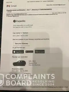 Car rental Oct. 7-10 Trenton Airport, 34 East Piper Ave.