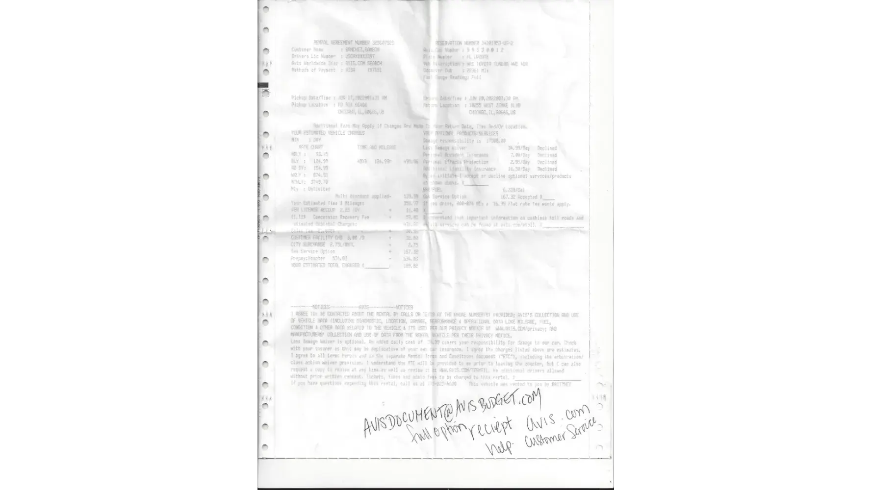 On19 October 2022 I received an E receipt from Avis in the amount of $3453.44 USD assigned to contract number 9*6