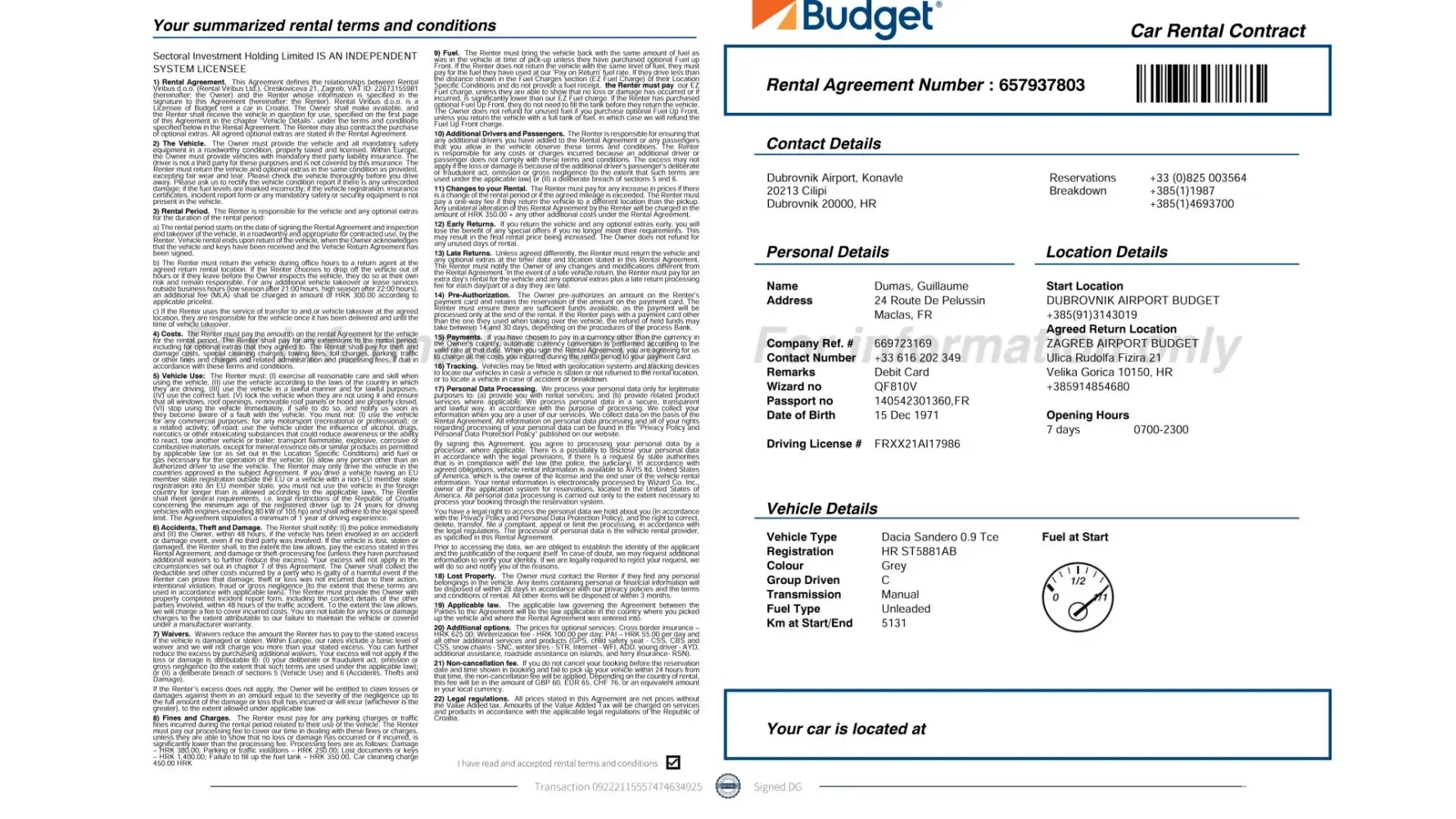 The car was in a very poor state of cleanliness, and I was not given any contract just a piece of carboard. This was despite my asking for a copy of my contract.