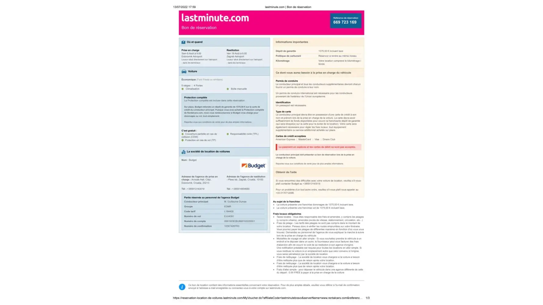 Nous avons loué deux voitures en croatie à Dubrovnik, celle de mon mari, payé environ 1375 € (Référence de réservation [protected]) et celle de ma fille payée 1375 € aussi (Référence de réservation [protected]), à la location nous avons été obligée de signer électriquement un contrat dont on ne connaissait ni les tenants ni les aboutissants étant donné que nous ne parlons pas couramment anglais, j'ai malgré tout bien spécifié que je n'étais s d'accord pour reprendre une assurance car j'en avais déjà souscris une (la vôtre lors de la réservation avec last minute) pensant que l'agence avait bien pris en compte mon refus de prendre leur assurance, nous avons signé, de plus ma carte de crédit prendrait également en charge des dégâts s'il y en avait eu, mais lors de la restitution de la voiture le 16 aout pour ma fille, et e 19 pour nous, personne n'était là à 6 h du matin alors que c'était convenu, ils ont donc inspecté les voitures seuls. Lors de la restitution de la voiture, ces deux dernières étaient rendues dans le même état que lors de la prise en main le 6 aout, nous n'avons subi aucun dommage, tout était en ordre nous n'avons eu aucun sinistre avec les voitures, et pourtant cette agence, Avis Budget Croatie s'est permise deux jours plus tard de nous soutirer 438 € pour mon mari et 273 € pour ma fille sur leurs cartes respectives sans que nous ne soyons informés et surtout sans savoir pour quelle raison ces sommes ont été retirées. Nous n'avons eu à ce jour aucune explication crédible sur ce débit. Il est hors de question que ces voleurs se servent sur notre compte ainsi, c'est scandaleux. Nous demandons le remboursement immédiat de cette somme. Les pratiques de ces entreprises sont honteuses je ne comprends pas comment un état européen peut tolérer ceci. Je leur ai envoyé des mails en les accusant de vol et leur demandant la restitution immédiate des sommes mais rien n'y fait, ils sont intouchables. J'espère que vous allez faire le nécessaire étant donné que j'ai souscrit une assurance chez vous et que si ces malfaiteurs nous ont soutirés de l'argent pour un dommage, vous allez nous rembourser car une assurance sert à cela. Je vous précise qu'il est impossible de vous joindre ni par téléphone, ni par mail, ni par votre site, ça aussi c'est scandaleux..