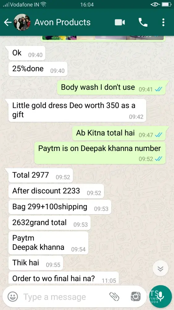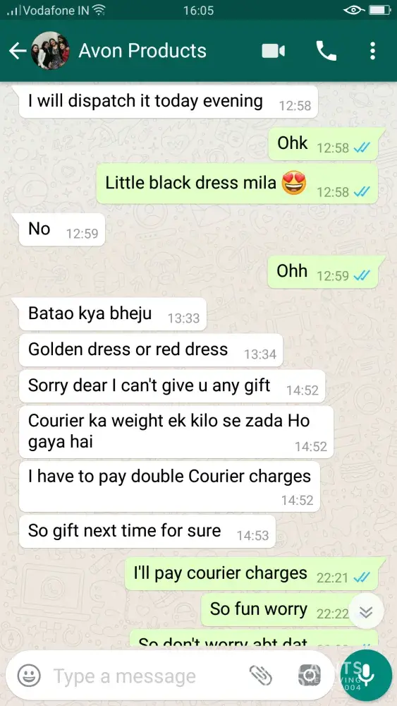 Hi.. This is Bhavya Gangwani from delhi(India)I had a very bad experience with an Avon dealer named Nidhi khanna( delhi-India). She is so annoying... She made fake promise to deliver free gift (Deo) with a purchase above 3000inr...