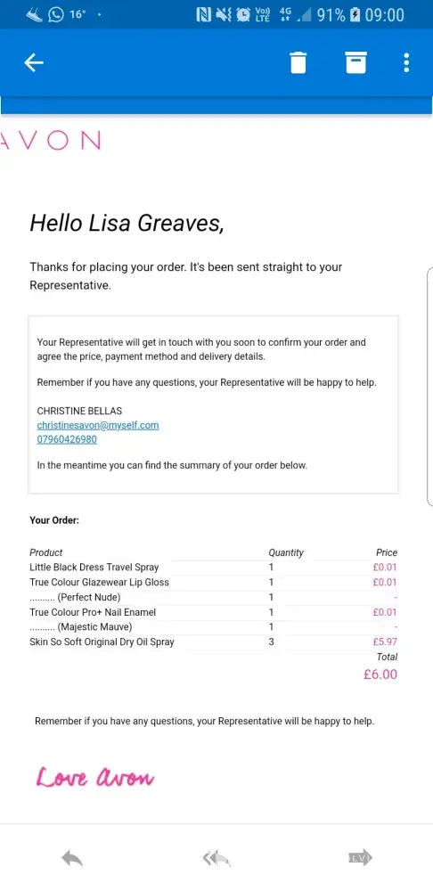 Hi I've been in contact with avon for few weeks now I placed an order with rep she gave me wrong order so I text her on number provided on order form I was told she would sort it then I contacted your team who keep telling me they'll get back to me I've produced my bank details to avon and still nothing I am fuming the way I've been treated ivecalways ordered when ever I get a book and get my friends to order but but seems for nothing now the ref number for many of my e nails is 4045237 can you sort this please.