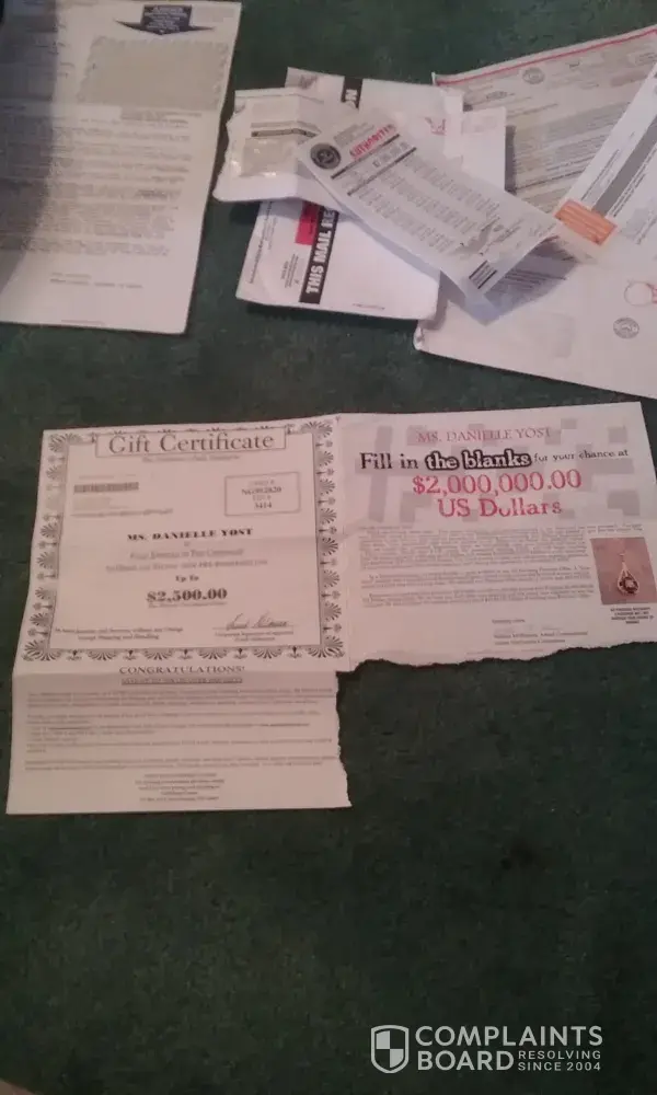 sent me "official activation documents" in the mail telling me that I was the winner of prizes and I should send the documents back with a certain amount of checks. I have several of those letters actually and I would love to get to the bottom of this. it says