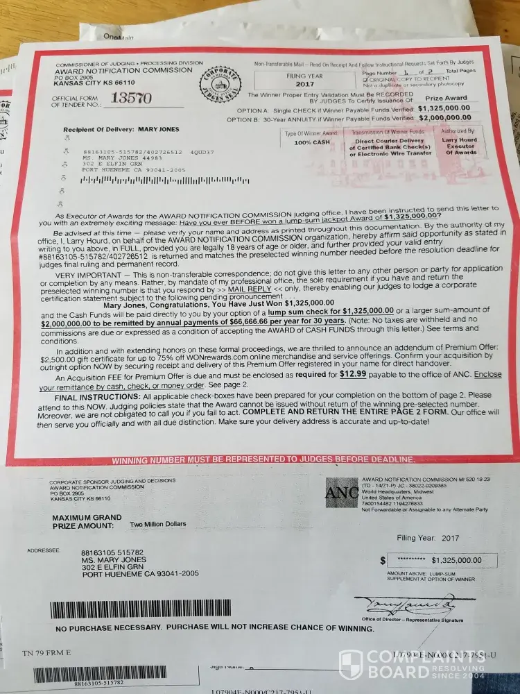 false winner letters received
