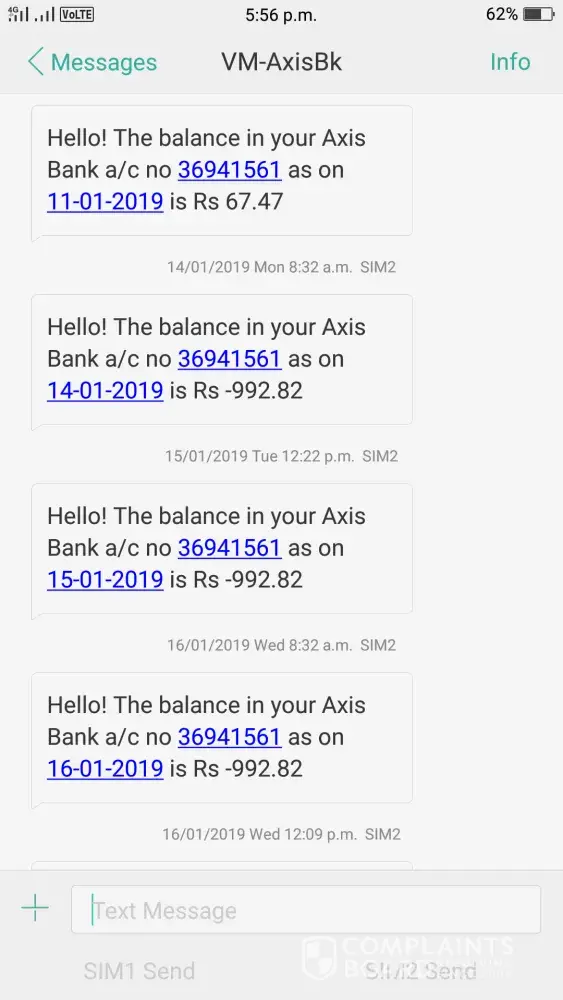 I am having my axis salary account. for last 6 months my account is getting cut under lean charges and consolidated charges but no details are given for consolidated charges. my full salary is deducted before the company deposit in account.