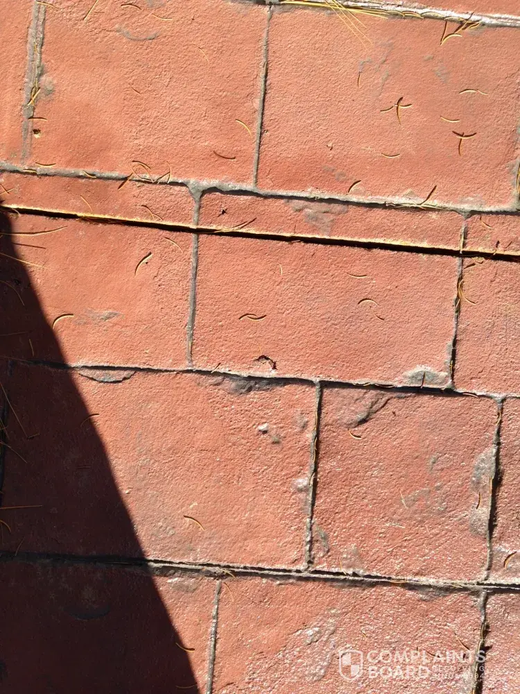 3. he does not know what he is doing, he let the concrete dry when stamping then tried to hammer in the stamping. He took out the steps twice because the first pour dried to fast and he couldn't get the stamp in.