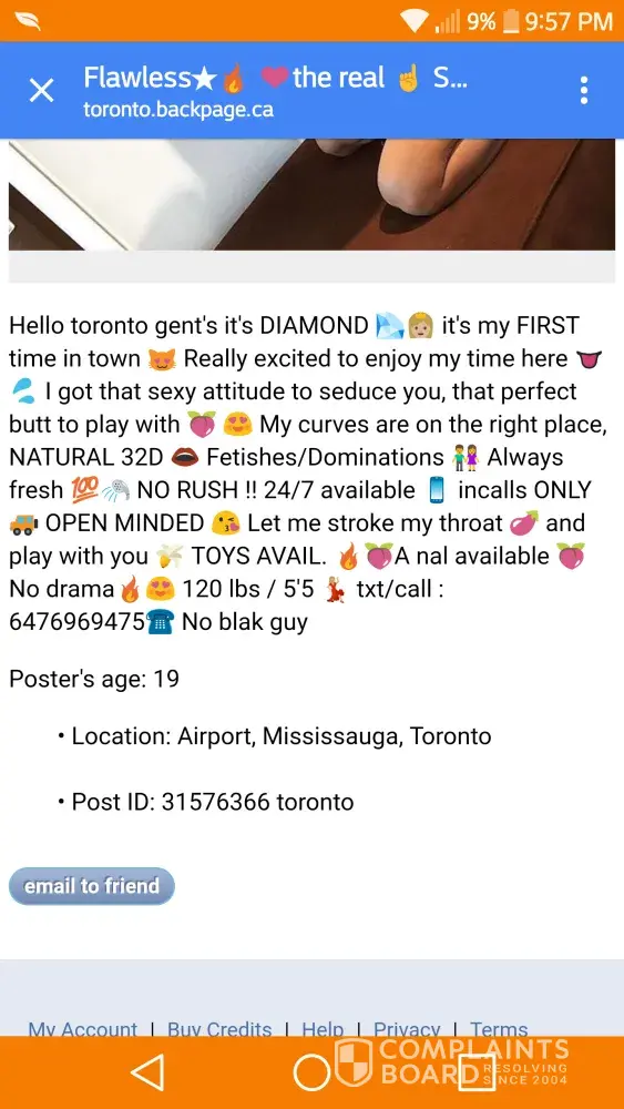 I would like her ad removed so no one can be conned ... She charged 140for half hour and 200 for an hour once money is in her hand she backs out of all she agreed to after she gets your money ...then tells you it was her texting you it was an agency. [protected]. Diamond is her name. I asked for my money back and she refused and I was angry but left because those kinds girls can make up anything and end up extorting or having false accusations on you .. I just want her ad removed ... Money is hard to come by these days and they have no right extorting money ..thanks for your time