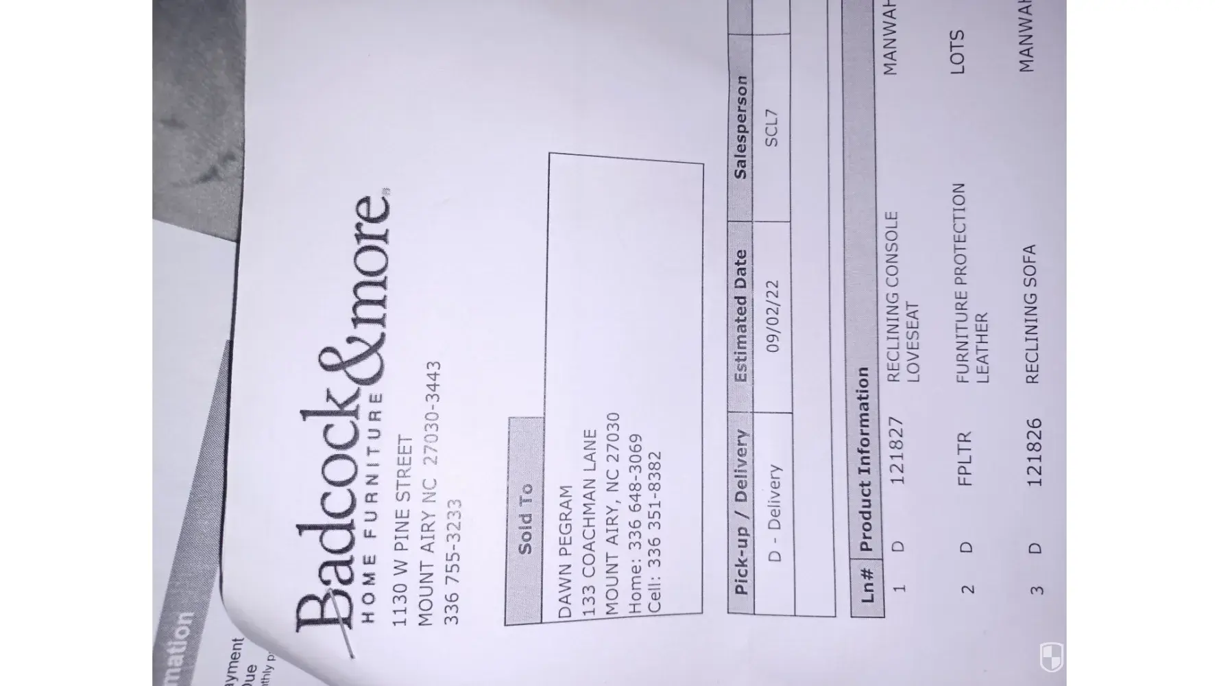Badcock & More Furniture protection plan