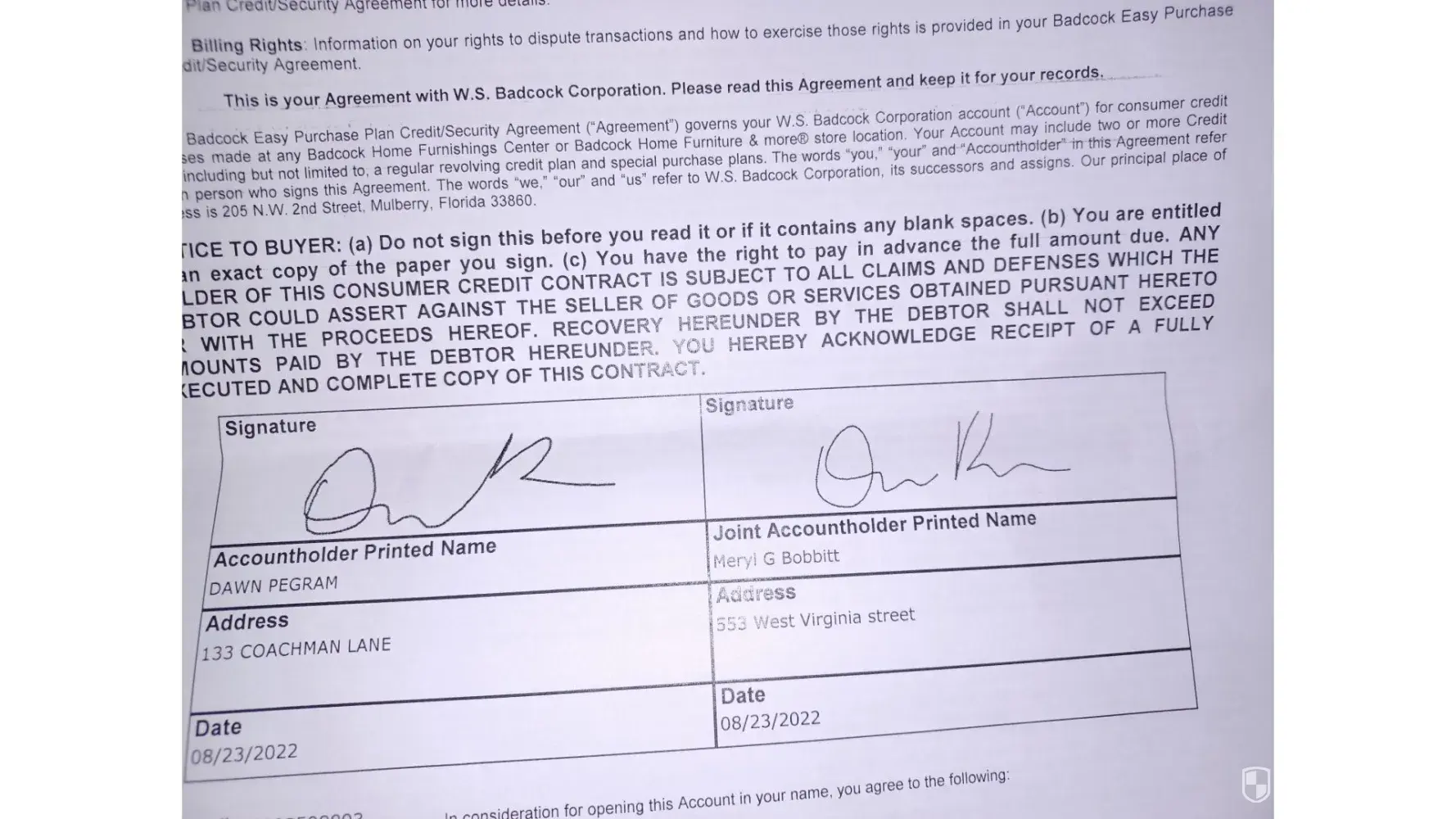 A co owners name was put on my purchase on [protected]. They were not there to sign an agreement. Was never mentioned that day and only my name and address was on top of pages. I signed where I was told. I have no association with this person and don't live with date or communicate with them. Every person I spoke with when the bill came wit mine and their name on it stated they could not change the paperwork, pick up the livingroom suit or correct their mistake. I will not pay for this until the matter is resolved. The information used was from 2021 when I just helped this person by providing a email since they didn't have one. Isn't this financial fraud.