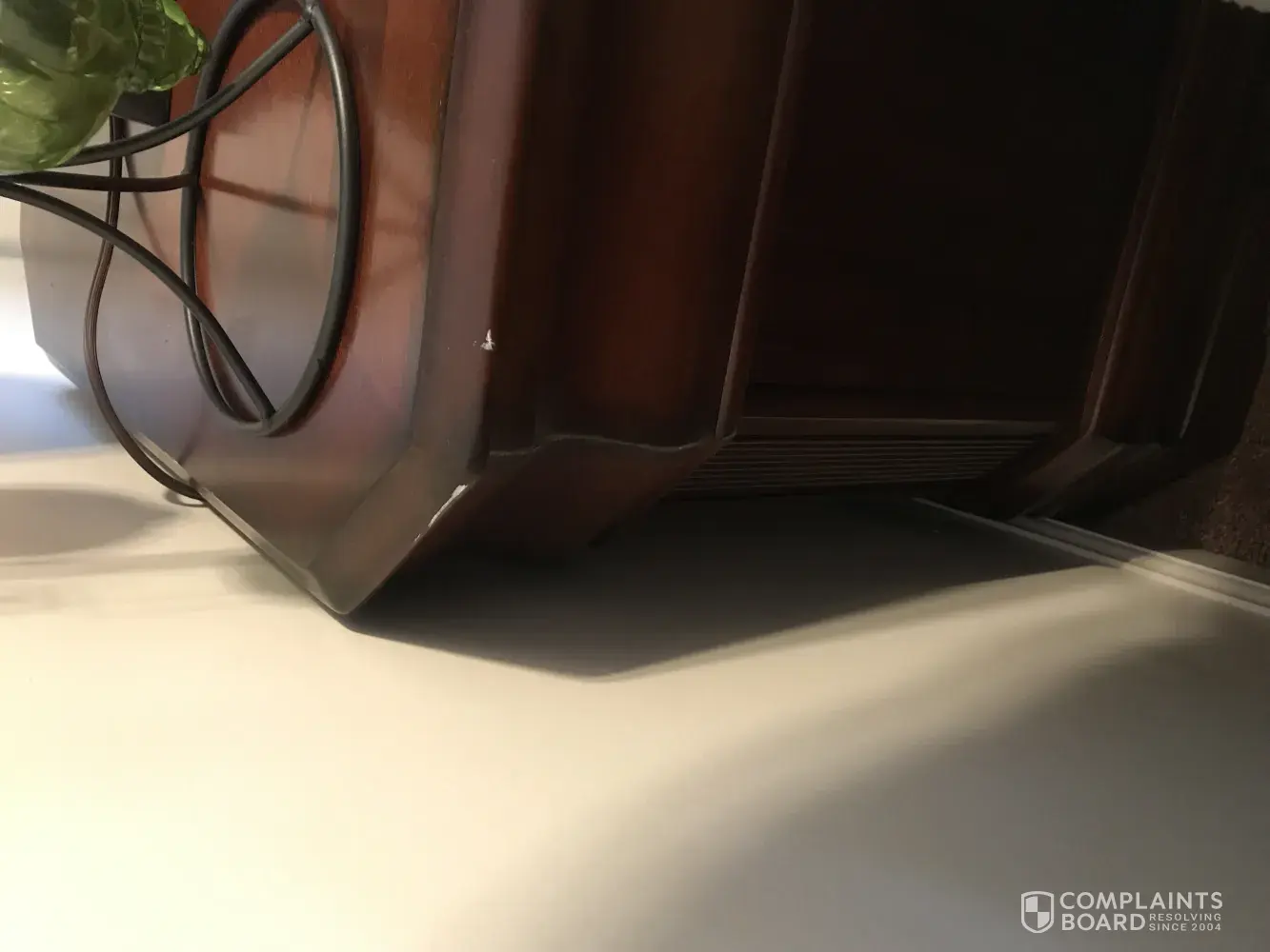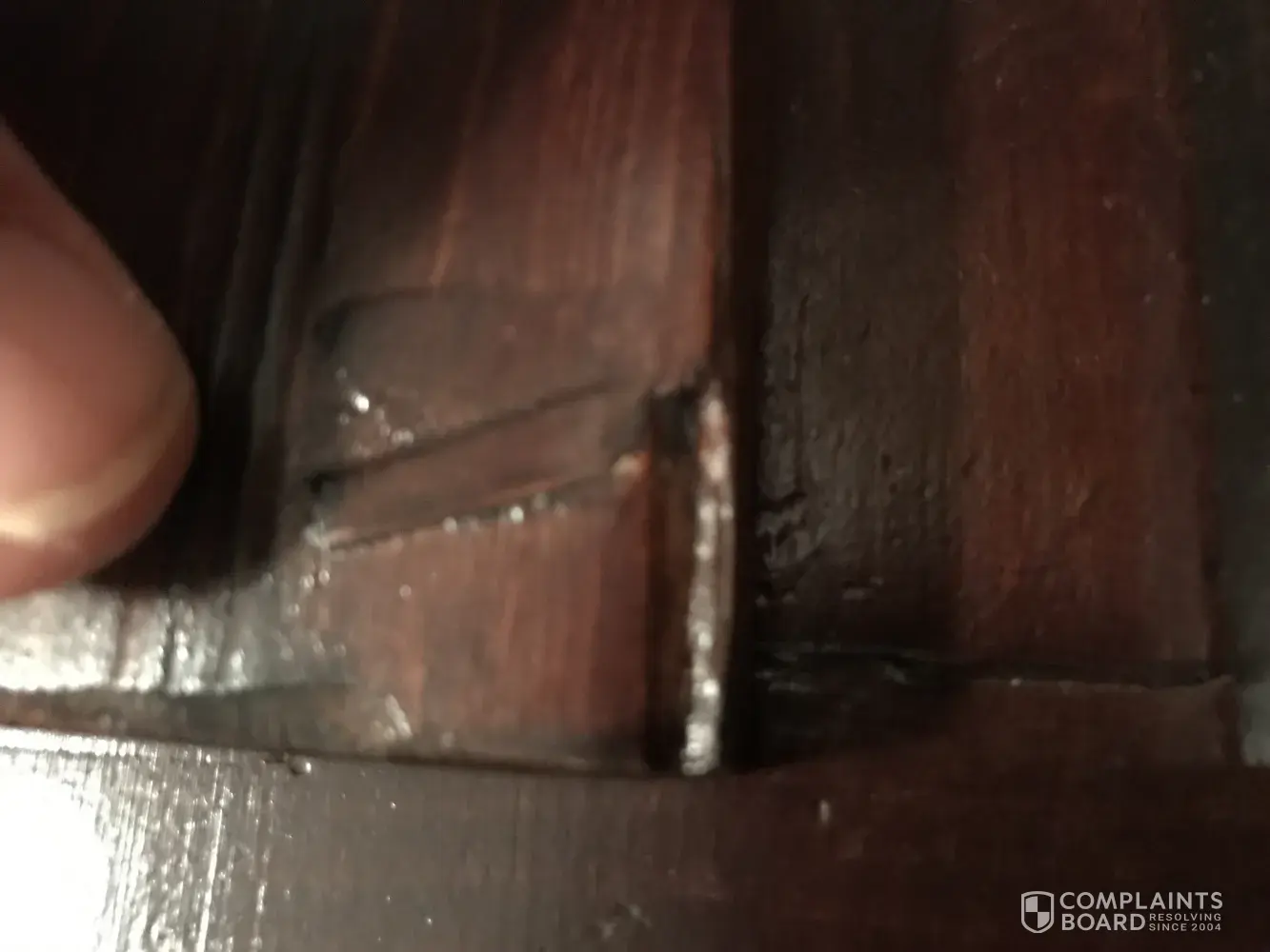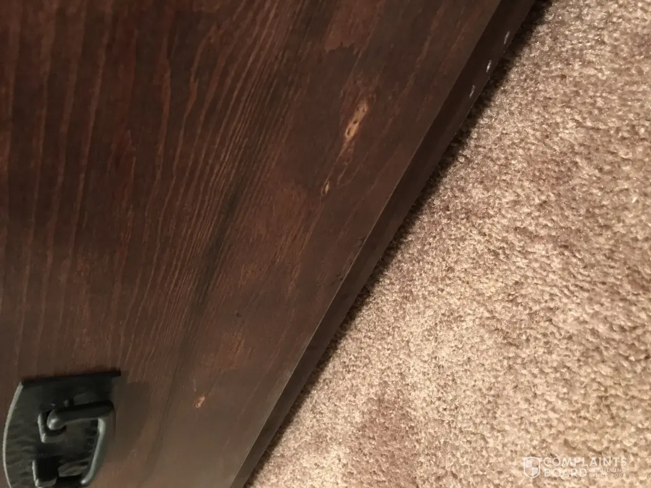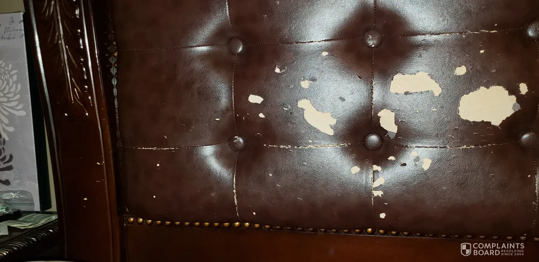 My husband and I have many pieces of furniture that we have purchased from Babcock. We have also purchased a bedroom set that we are pleased with, aside from our headboard which is now peeling terribly. It is bubbling and pieces are falling off. It looks terrible and I have pictures enclosed of the damage. We would like to continue purchasing furniture from your company and would like this situation resolved in the form of your company providing us with a replacement headboard. We would like to thank you for your assistance in advance!