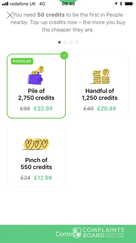 I wrongly thought that this very high outlay would cover all potential costs of using Badoo. However, I quickly found out that Badoo expected ms to fork out even more for 'credits' to contact other people.