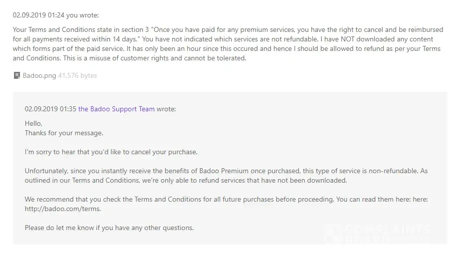 When after a couple of days I asked for a partial refund this was flatly refused by Badoo.