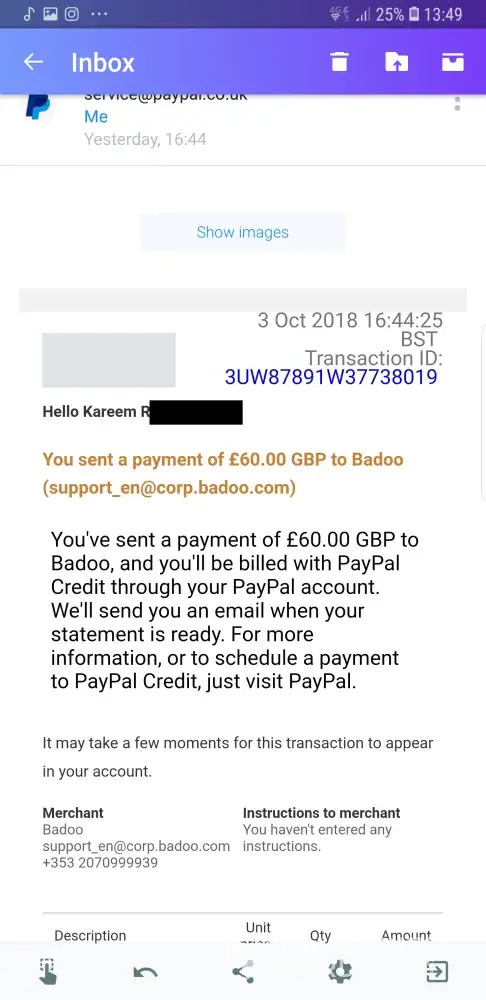 Already 4 days after sending a private message to badoo with all the details and requesting my money back, Still no reply from them...