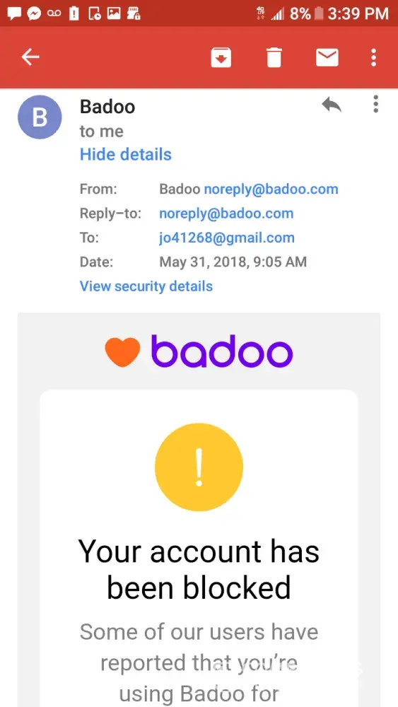 I'm creating a new topic well since I have not received a response to the previous topic about my account that has been blocked unnecessarily as it has never previously had Badoo accounts. as you will see in the previous topic you will see below https://www.complaintsboard.com/complaints/badoo-trading-my-profile-does-not-work-c999660.html, you asked me for the email I connected to badoo to check my profile again. my email is [protected]@gmail.com. I'm waiting for you to let me know