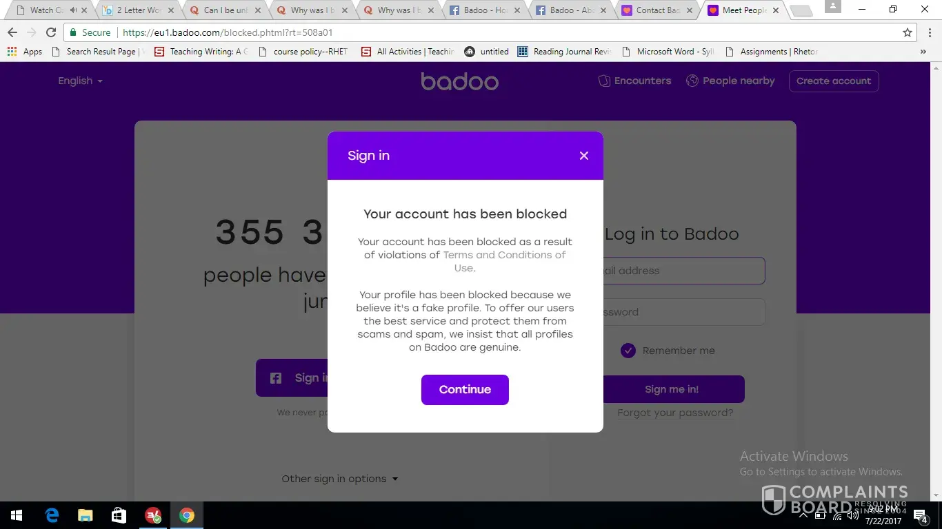 I downloaded badoo and registered only yesterday evening and log on this afternoon only to find I have been blocked without a reason. While logged in a message popped up telling me there was an issue with a server. I pressed okay to which it logged me out. I re entered my number and password and now I get a message reading 'your account has been blocked, check your email for details' I have had nothing come through on my emails and did nothing wrong while using the site. Why has my account been blocked and is it permanent? I don't understand. I was also verified on all platforms bar twitter.