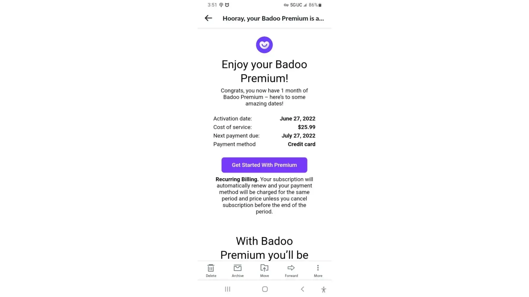 Badoo Premium accidentally activated