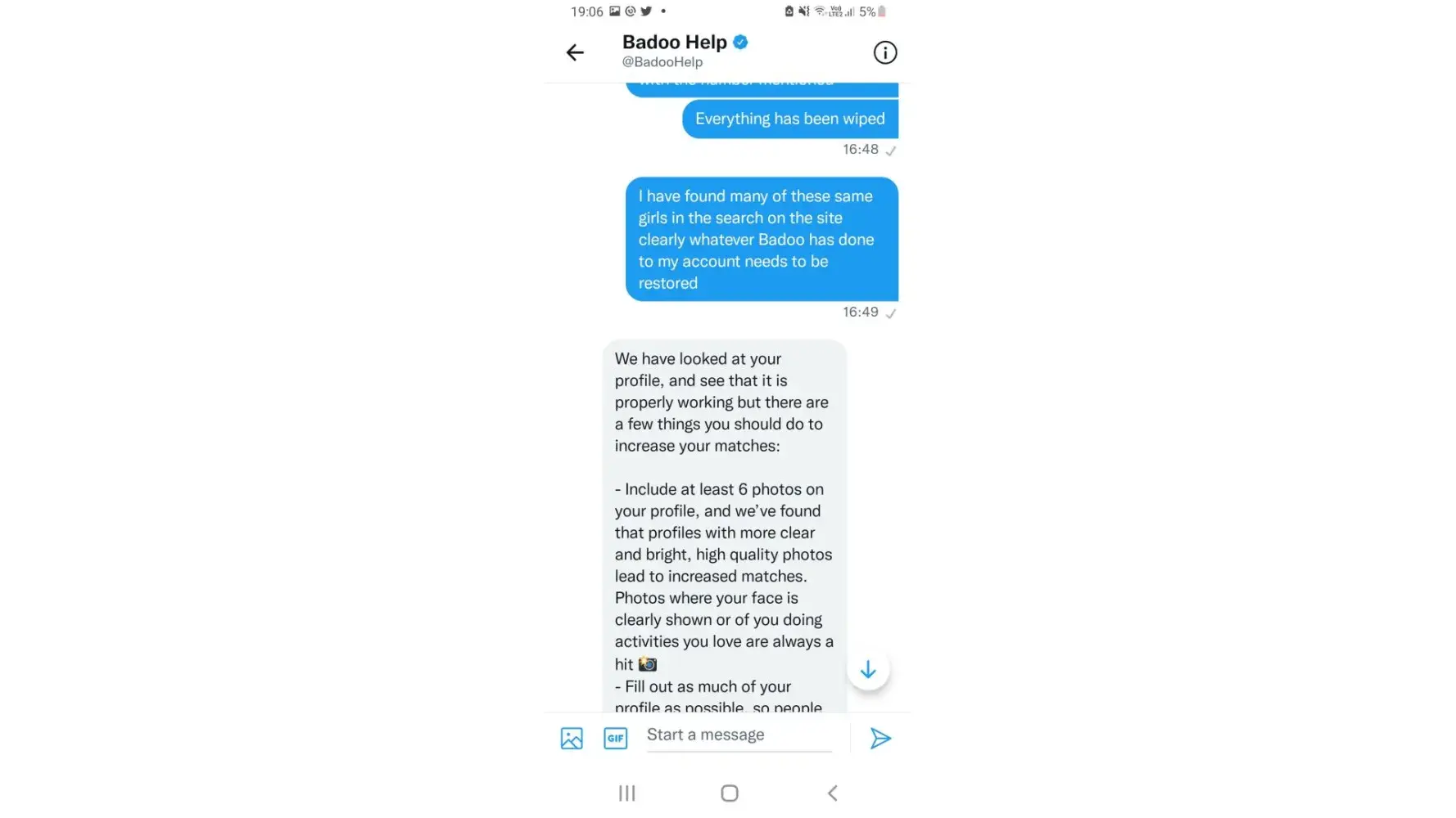 A customer support from Twitter called Wendy first of all didn't bother to read my query properly then proceeded to copy and paste irrelevant information which had nothing to do with it then gave me an explanation which wasn't the least bit plausible and to finish it all off told me the next time it happens come back. Hands down the worst support I have ever received. My problem still hasn't been sorted.9 girls messaged me and in the space of 24hrs they all disappeared. I have committed no violation nor has any of them deleted their accounts. Claims that my account has been checked given the support received now believe it to be a lie
