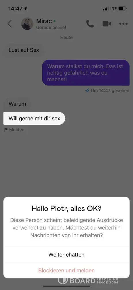 Someone stalking me on the dating service got permanently reported by me also after badoo asking me automatically if all is good.