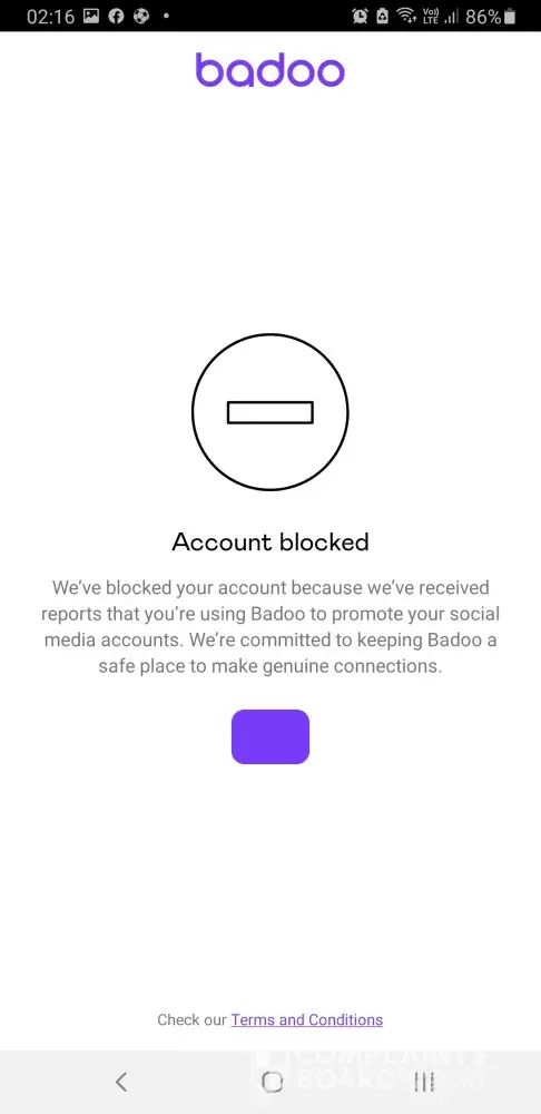my account was blocked without a reason, the reason was just that i bought subscription and after Badoo got me Ban coz they earned from me already then they kicked me...