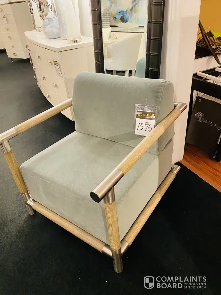 We went mid-November in one of their store and looked for couches sofas ideas etc.; besides the sealer Cindy I believe commenting on a loud voice /have to find a within your budget" as $2000-$4000 is cheap, we found a chair that above all loved the color/ was a green ocean with a gray hue on it; when we mentioned we like the green color she never comments nor correct us as we found out that was not the color of the chair off the lighting was diplomatically arranged in the store; I took a picture of it and we order it; when we received it, was a totally different dark gray color and immediately refused it; I also took another picture and you can see the difference between it; after a ridiculously dialogue text back and forth, accusing us of a bad visual or camera quality we came in the store to speak to a manager/ which later found out wasn't there and he's later avoiding us and we expected the money back. We were told to go to wear house and find the chair we want as some colors may differ since we won't get our money back