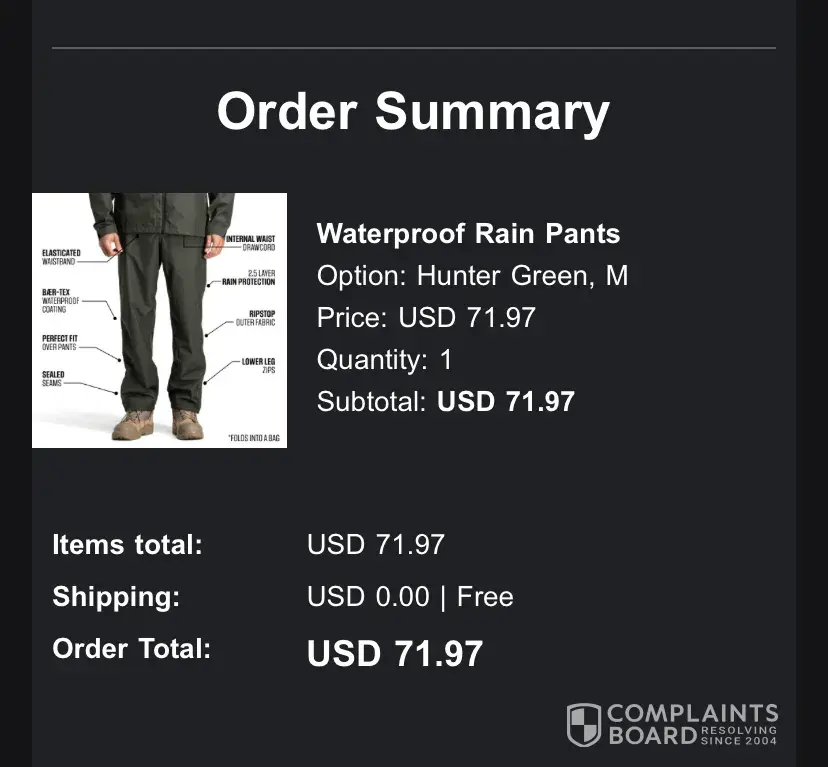 Their adds are all over youtube. Very high production values for what looks to be quality outdoor wear. I ordered a rain jacket back in June. By September it still had not arrived. I made several calls to customer service (which were never returned). Emails to customer service were answered with "production delays", "popular item sold out quicker than we...