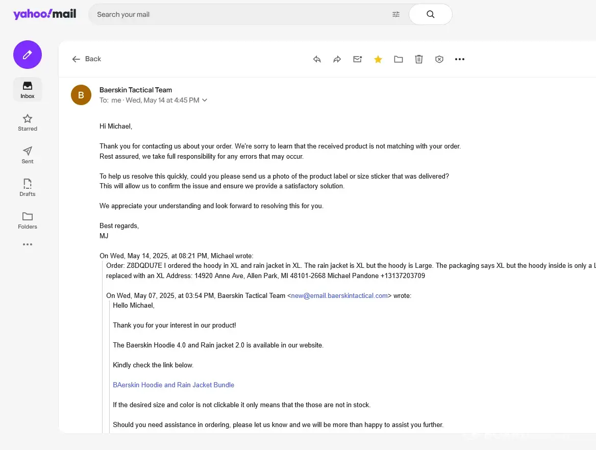 If you haven’t received any help yet, please email me directly at stephanie@baerskinhoodie.com, and I’ll personally address your concern. Your feedback is invaluable, and I appreciate your patience as we work to resolve this.