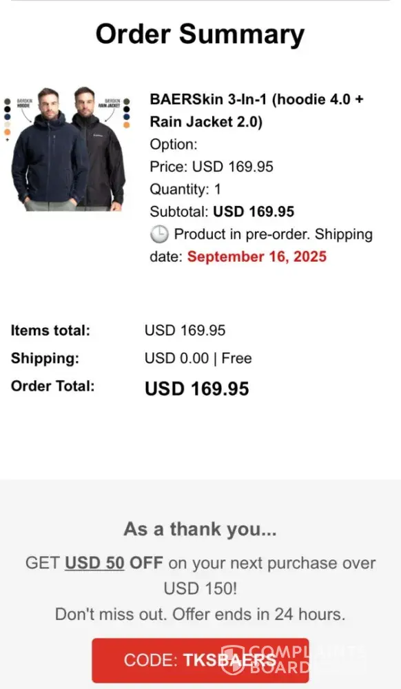 BAERSkin Hoodie Never received jackets but payment taken right away. No one to help