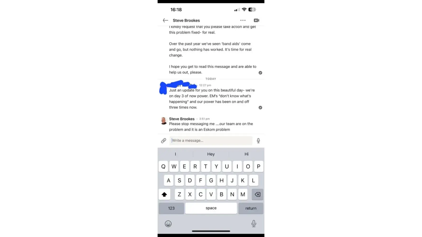 Electricity outages and poor communication from management